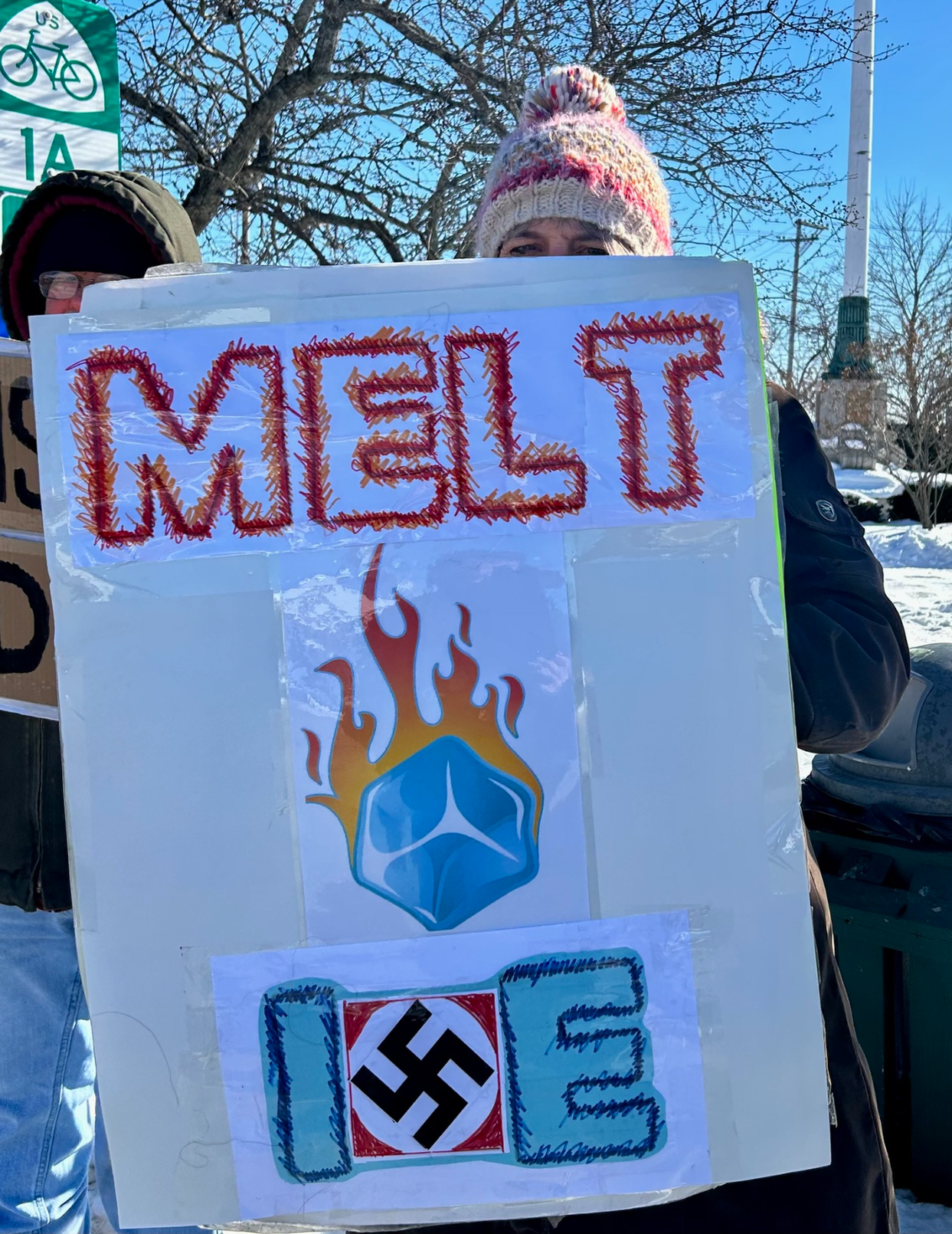 | Saturday, March 21 @ Noon: Stand Out and Sing Out in Rockland’s Chapman Park We are a diverse group. Together, we choose democracy. We demonstrate the perseverance of local opposition at the corner of Park & Main Streets. We sing, hold signs, have conversations, collect food/hygiene donations for the local food bank, and give away buttons and postcards.Bring a sign (we have signs you can borrow too), your voice and your heart. Make a friend. Bring a friend! Bring food and hygiene items to donate. Dress warmly and know your own limits. Your creativity in noisemaking is welcome with one exception: while we are distributing whistles at Chapman Park, please reserve use of whistles for sightings of ICE. |